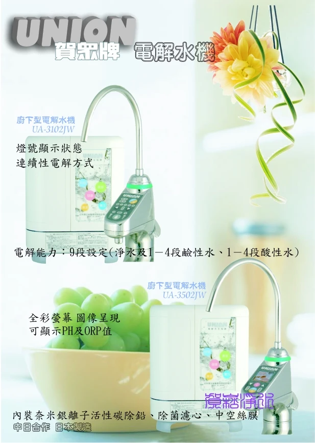賀崧淨水 賀眾牌 中日合作 頂級廚下型電解水機UA-3102